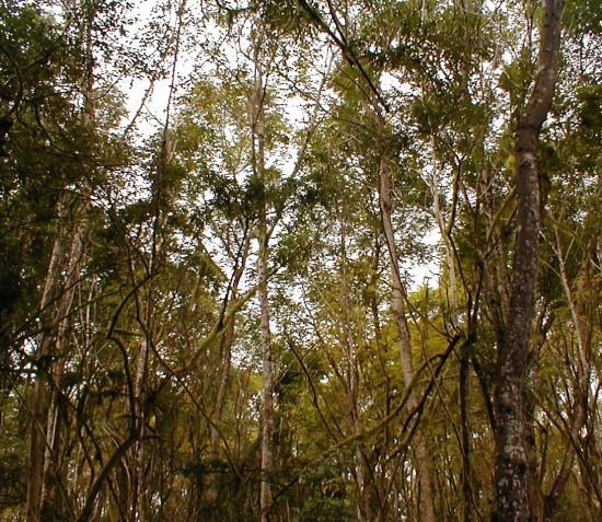 Figure 4b. Replacement of Transition Zone Scalesia pedunculata forest by introduced Cedrela odorata and Psidium guajava. 2004. Photos: O. Hamann.